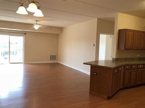 Welcome to River Crossing! LUXURY living for active adults 55 and better. This unit is exceptionally quiet and features 2 bedrooms, 2 FULL bathrooms, in-unit laundry & a PRIVATE balcony with amazing views of the Fox River! Located on the same floor is 24-hour access to the workout room, recreation room and storage locker. Complimenting the building are first floor retail storefronts and your private heated indoor parking garage with an ELEVATOR to take you right to your front door! With the nearby parks, walking/bike paths and the peaceful surround, this is the perfect place to call home!
