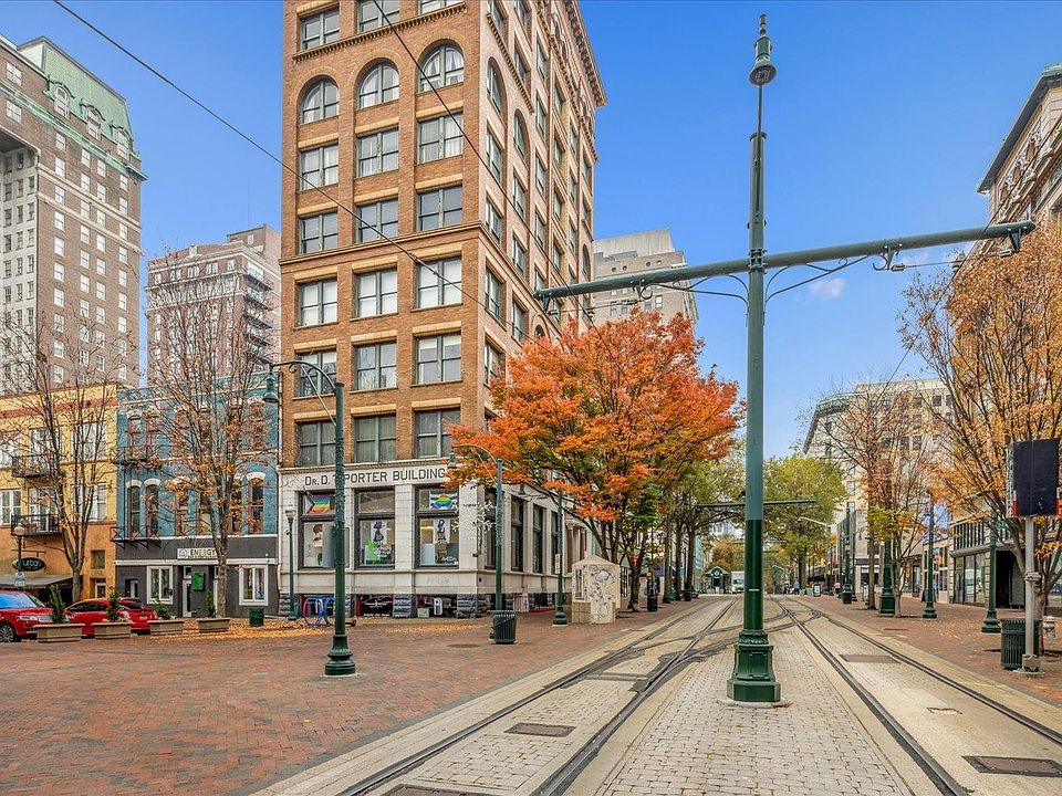 Spacious 3rd Floor condo overlooking Court Square Park and Main Street. Updated counters and stainless appliances in Kitchen. Both Bathrooms have a Bidet. This condo has tons of natural light, great views, New HVAC in 2021 and a Custom Closet in Primary Bedroom. The rooftop deck has 2 levels, very spacious. views in all directions, great M Bridge Views and Sunsets are spectacular! Great location walkable to all Downtown has to Offer. Parking can be rented in one of multiple garages within a block of the building! Dont miss the great value for the spacious Condo!