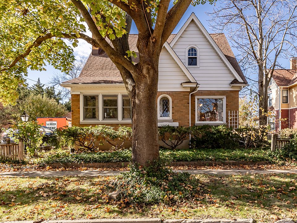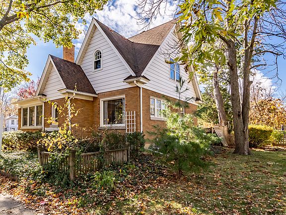 This brick house is located on a corner lot of one of the best blocks in the Elgin Historic District. The house has three bedrooms and one and one-half baths. One bedroom and half-bath are located on the first floor, ideal for an in-law arrangement. Two bedrooms are upstairs including the master bedroom with a sitting room attached. The living room has a fireplace, flanked by original leaded glass windows, atop built-in bookcases. The kitchen has tall IKEA cabinets and a walk-in pantry, where the built-in refrigerator is located. The driveway to the brick garage is located off Porter Street. An ample-sized side yard has lots of possibilities to locate gardens, a large lawn area, or a patio. Exterior was repainted in 2020. sewer line was replaced in 2022. See additional information for complete list of improvements. Both city and neighborhood grant money is available for exterior improvements.