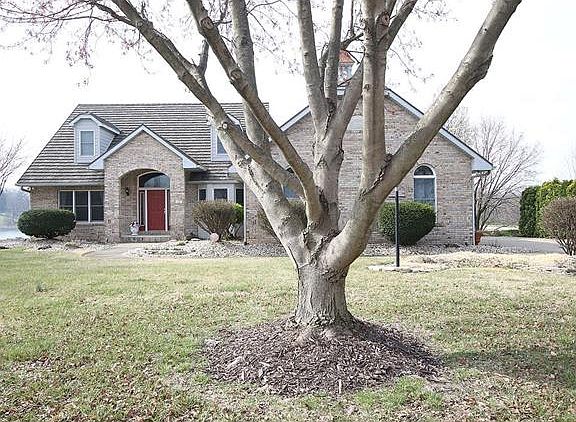 Enjoy the southern exposure and westward sunsets on the back porch of your home on Dunlaps 118 acre Lake in the exclusive North Shore area. Some of the quality features on the custom built 1.5 story with master bedroom suite on main level w/ huge recently updated master bath w/ heated ceramic tile floors, 2 stone fireplaces, Andersen double hung tinted windows, surround sound speakers through out basement, main level and outside patio and deck. An energy home audit was performed in 2016 with added insulation in attic and basement as well as a new Decra metal insulated shake design roof in 2011 for very efficient utility bills. Additional extras like under counter lighting , granite counters, custom blinds, 2 furnaces, gutter guards, sprinkling system, 8' tall garage door, wet bar, pool table, w/o basement and extensive block retaining walls & steps to lake. Before making offer Buyer to independently verify all MLS data which is derived from various sources & not warranted as accurate.