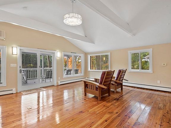 BRAND NEW SEPTIC INSTALLED. Rare opportunity on the shores of Lake Boon. This multi-level waterfront home offers the perfect blend of comfort, style & outdoor recreation. Inside, you will be greeted by an open living room w/beamed ceilings & stunning hardwood floors w/sliders leading to a covered back deck with breathtaking views of the lake. The beautiful kitchen features granite countertops, ample cabinet space & a large island. The main bedroom is a luxurious retreat with an en suite bath that boasts a steam shower & radiant heat for your comfort. A spiral staircase takes you to the partially finished lower level with an office and bathroom as well as potential for additional living space or an in-law suite.. Outside, you'll find a hot tub, storage shed, a sandy beach area tucked away in a peaceful cove with both a covered patio & deck for lakeside relaxation. Bring your dock, boat, canoes & paddle boards and enjoy your year-round paradise on fully recreational Lake Boon.
