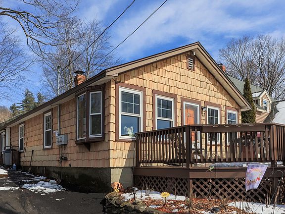 Enjoy Beautiful view of Beaver Lake from this Well cared for Derry Ranch offering open floorplan- Bright and sunny dining room- large living room- cozy kitchen open to both Liv/Family rooms with garden window- Gorgeous upgraded full bath with jetted tub and flex stone surround! 2 bedrooms with master access to 3 season porch (wired for hot tub) Family room offers corner brick hearth/woodstove-offering great heat savings! Shed is partitioned for storage/2doors. This home is part of the Lot 5 beach assoc. to use gated beach area across street with shared raft/benches $35 annual fee. A wonderful condo alternative!