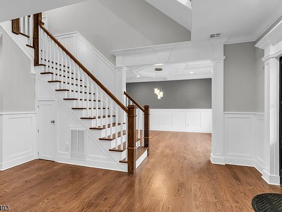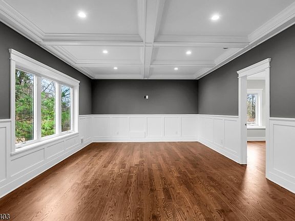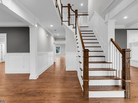 Welcome to this beautifully renovated 6-bedroom, 4.5-bath luxury home! Intricate custom millwork, high-end finishes and hardwood floors are found throughout every level of this exceptional home. The gourmet kitchen is a true showpiece boasting quartz countertops, custom tile backsplash, center island with seating, top-tier stainless steel appliances, extensive cabinetry and prep space, as well as a walk-in pantry with shelving and dry bar with a wine refrigerator. The family room features a gas fireplace flanked by built-in cabinetry and doors to the rear patio. Also on the first floor is the elegant living room, formal dining room, private en-suite bedroom (perfect as guest suite or office), mudroom, and powder room. Retreat upstairs to the luxurious primary suite with custom-fitted walk-in closet and en-suite bathroom with soaking tub, oversized glass-enclosed shower, and dual quartz vanities. 3 additional bedrooms (2 en-suite), and a laundry room complete this floor. Loft space on the 3rd level is ideal as a 6th bedroom with a large closet and extra attic storage. Fully finished basement is ready to customize to suit your needs. Enjoy outdoor living on the patio perfect for entertaining with views of the expansive property set on .74 acres. The detached 2-car garage is insulated with loft storage. Close to shopping, parks, restaurants, and transportation in a top NJ school district, this rare offering combines luxury, functionality, and privacy in one spectacular package!