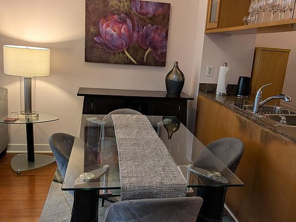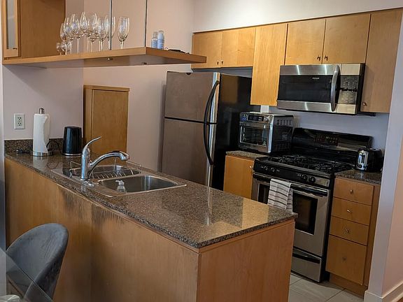 Welcome to this Fully Furnished bright and spacious 1-bedroom + den suite in the sought-after CityPlace community! Utilities fully included with rogers ignite tv and cable. Offering over 686 sq. ft. of well-designed living space, this unit features an open-concept layout with floor-to-ceiling windows that fill the home with natural light. The kitchen boasts modern appliances, ample cabinetry, and a breakfast bar perfect for casual dining. The combined living and dining area flows seamlessly onto a private balcony. Ideal for enjoying city or lake views. The primary bedroom is generously sized with a large closet and sliding doors, while the den offers flexible use as a home office, guest room, or second bedroom. A modern 4-piece bathroom, in-suite laundry, and tasteful finishes throughout complete this stylish urban home. Residents enjoy access to outstanding 30,000sqft of condo amenities at the Super Club including fitness centre, indoor pool, hot tub, basketball court, 24-hour concierge, and visitor parking. Located steps from the waterfront, Rogers Centre, CN Tower, TTC, shops, parks, and restaurants. Everything you need is right at your doorstep! Ideal for professionals or couples seeking convenience and comfort in the heart of Toronto. Accepting 6 months or a 1 year. $2900 without parking.