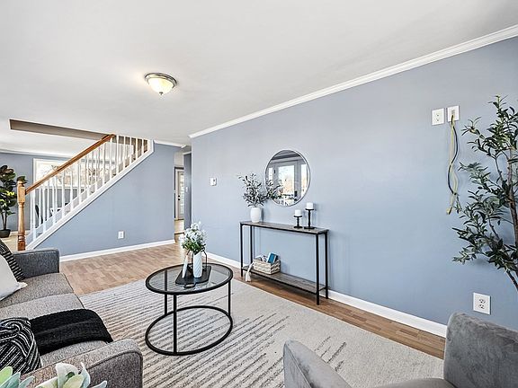 OPEN HOUSES CANCELED. MULTIPLE STRONG OFFERS RECEIVED. SELLER ACCEPTING OFFER. Move-in ready, beautiful three-bedroom Cape-style home in Oxford offering numerous updates! Enter in the beautiful new porch and find a sunny and spacious living room offering large picture window. Open concept kitchen and dining space makes entertaining easy! Kitchen offers tile floor, granite countertops, crown molding & stainless steel appliances as well as access to the lovely attached sun room! First floor boasts the primary bedroom & a full bath equipped with a walk in shower. The upper level comprises of 2 additional spacious bedrooms offering stunning hardwood floors & a half bath. Down in the finished basement you will find a large family room with recess lighting and ductless mini split! Major recent updates include new siding, new sleek metal roof, new windows, all new doors, new paver walkway, & a new front porch! Spacious flat back yard and storage shed.