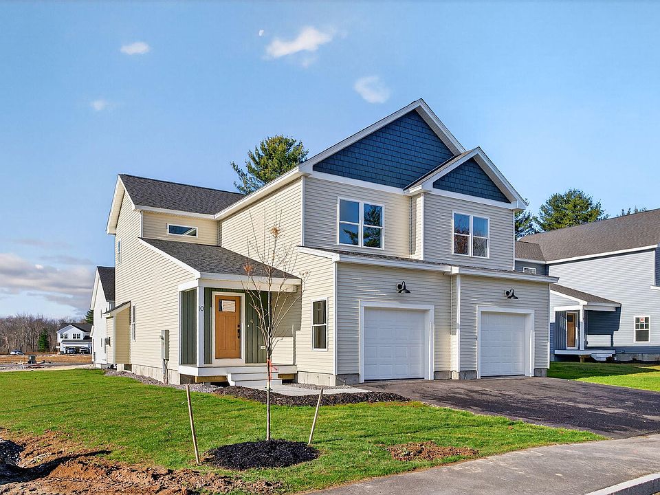 Welcome to 10 Nicklaus Lane in Westbrook's Rivermeadows neighborhood! This new construction home offers an incredibly spacious layout designed for modern living. A vaulted foyer and front porch set the tone, leading into a sun-filled first floor with an open concept design. The living room is anchored by a gas fireplace, while the dining area and sliders to a south-facing deck make entertaining a breeze. The kitchen is a showpiece with quartz counters, a large island, tiled backsplash, pantry, and sleek appliance package. Upstairs, the primary suite is a true retreat with a spacious bedroom overlooking mature trees, a luxurious ensuite with walk-in shower, water closet, and dual vanity, plus a dream-worthy walk-in closet. Two additional bedrooms, a full bath, laundry room, and a versatile space on the upper landing perfect for a desk, reading nook, or Peloton complete the second floor. Set just a mile from downtown Westbrook's popular restaurants, breweries, shops, and parks, Rivermeadows combines neighborhood living with easy access to amenities. Move right in and enjoy all the benefits of new construction in one of Greater Portland's most exciting communities!