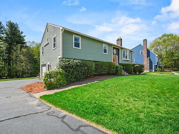 Welcome to this charming 3 bed/2 bath Contemporary split-level nestled in a premier cul-de-sac! Unwind in the sun-drenched living room, featuring a large bay window, gas fireplace & vaulted ceiling. The open floor plan flows seamlessly into the kitchen which boasts granite countertops, SS appliances & cheerful dining area w/deck access – perfect for enjoying the outdoors! 3 bright & sunny bedrooms offer ample closet space ensuring a place for everything. A full bath is conveniently located off the hallway. Head downstairs to discover a finished bonus room – ideal for a game or media room or anything your heart desires! A dedicated office space offers a quiet haven for productivity. The finished lower level also boasts a full bath w/ jacuzzi tub & laundry. Interior access to the 1-car garage adds convenience. Expansive backyard is due to create lasting memories, complete w/ multi-level entertaining w/ a patio, firepit, & spacious yard abutting conservation land- a true retreat!
