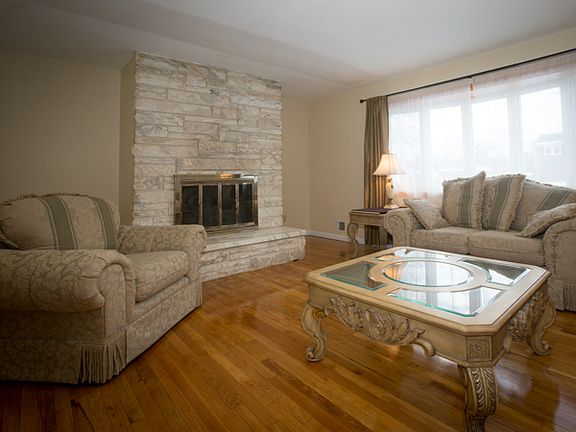 IMMACCULATE RANCH ON BEAUTIFUL Home features 3 brs, 2 baths, tiled ent fyr, lrg lr w/ stone gas burning frplc, frml dining room w/frpl , eat-in kit and master bedroom boasting master-bth! also, complete level fenced in yard, central air and full, unfin basement ready to be finished. $489000
