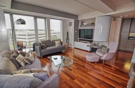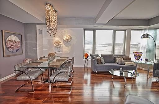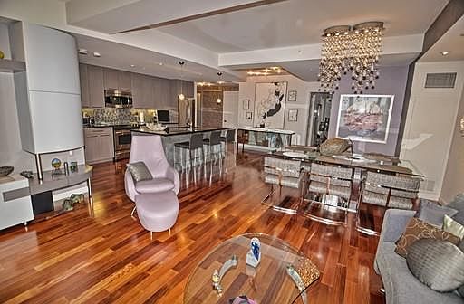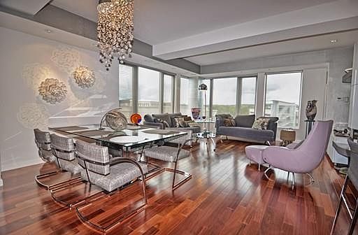 This spacious sun drenched SW corner unit with private balcony has been fully renovated with exquisite designer finishes. Enjoy the luxury of a radiant heated master bathroom floor & heated towel bar. Both full bathrooms boast glass or porcelain tiles, custom cabinetry hardware, designer granite counters, faucets & mirrors. Kitchen is outfitted w/ custom cabinetry & hardware, expansive island, granite counters & custom backsplash. This sophisticated unit comes complete w/ many upgrades including custom closet systems, mahogany hardwood floors, surround sound, pocket doors, stunning crystal dining fixture & other designer lights throughout. There are 4 individually controlled heat pumps & LED lights to ensure energy efficiency. Private secured access to an ultra mall, Club Nouvelle, Fit Nouvelle, 1.2 acre lush roof garden & 24/7 concierge are some of the benefits of living in this upscale building. Complete w/ a winning floor plan, 2 garaged parking & storage. Truly a unique home!