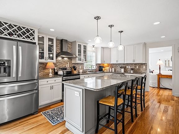 Stylish and Sophisticated describes this 4/2.5 Colonial beautifully sited in desired Wrentham Woods neighborhood. Meticulously maintained and tastefully decorated, new hickory floors throughout, featuring an open floor plan that allows for today's easy entertaining flow. Chef’s Kitchen w/hdwds & high-end stainless appl., center island & large eat-in area opens to FR w/sliders to composite deck w/commanding views of sunsets and dining al fresco. Sun splashed, front to back LR w/hdwds and wood burning fireplace offers the perfect gathering place w/family & friends. Formal DR for entertaining. 2nd level w/4 bedrooms includes Primary w/ensuite, walk-in closet, 3 additional Bedrooms plus full family bath complete the upper level. Partially finished, walk-out basement w/bonus room/home office/flexible space. Solar Panels on back roof! 2 car garage, CAC, Town Water, close proximity to quaint center of Wrentham, Outlets, Patriots Place, dining and all the town of Wrentham has to offer!
