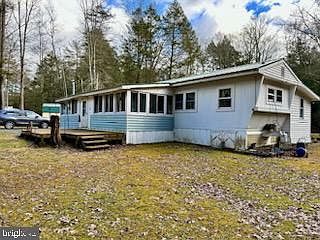 This mobile home w/additions on 2+ acres with a stream is great for a second or full time residence. With the sunroom you can enjoy this peaceful setting inside and out. Fish from your own yard. The roof was replaced in 2011, furnace 2012, the well was also added in 2012. Trex decking. Wood stove. Most furnishings in the home and items in the shed will stay. Not far from State Game Lands. Could also be an opportunity for an AirBNB. This property will not be acceptable for most financing, cash only!