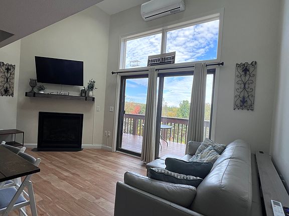 This townhouse has a cozy, laid-back vibe that makes it easy to settle in, whether you're here for a month or a year. It's set up with everything you need, from a full kitchen to a comfy couch and even a gas fireplace for chillier nights. The living room has a full pull-out couch and a TV, so there's space for guests or just a good movie night. Just off the living area is a private deck that looks out onto trees and ski slopes, the perfect spot for a cup of coffee to start your day.