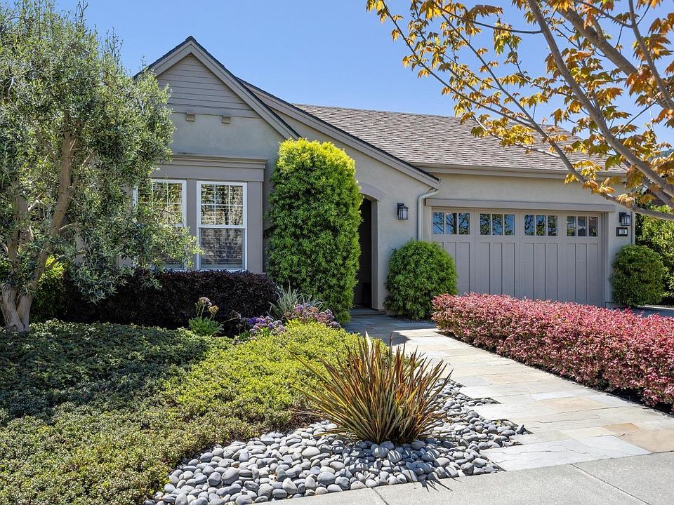 10 Orchid is a just-renovated single level tranquil retreat in the heart of Larkspur. There are high ceilings, large windows, and tasteful finishes throughout. This meticulously maintained single-level home has been recently remodeled with new bathrooms and a beautifully updated modern kitchen boasting an elegant contemporary design. The living room features custom built-ins with architectural shelves and Wall Theory concrete slabs. There is a bar area and pantry in the pass through to the formal dining room which opens to a peaceful side patio with water feature. There are custom automatic window coverings on most windows. Step outside and discover your own private oasis with lush landscaping, an architectural bluestone wall and a spacious patio perfect for al fresco dining. The stunning metalwork of the two custom pergolas in the yard create an outdoor living room and kitchen/dining space, making it the perfect spot for entertaining under the stars. The primary suite also opens to the lovely landscaped backyard. Its new bathroom features a fabulous soaking tub, designer Porcelanosa Tile and a gorgeous vanity with Sile Stone quartz slab countertop. There's a good-sized walk-in closet in this suite. The bedroom at the front of the home has been customized as an office. Exquisite!