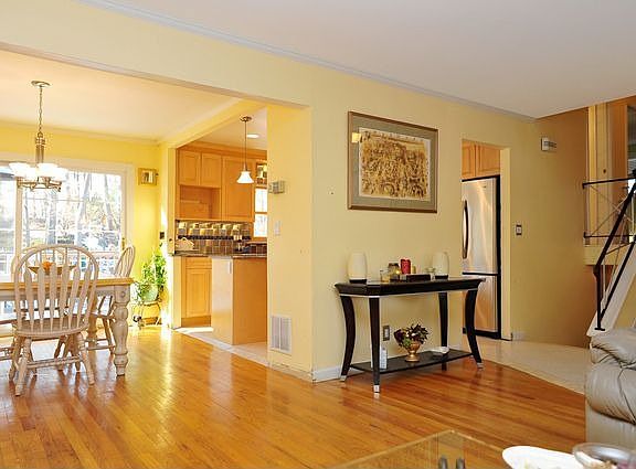 A must see! This home features a beautifully renovated kitchen with top-of-the-line stainless appliances, maple cabinets topped with high end granite counters, a large island & stainless steel backsplash. There are hardwoods floors throughout & a large living room. Two separate living areas with access to the huge backyard with a deck, paver patio and pond. The lower levels include a wood burning stove and a large playroom with storage. Other amenities include a new roof and one car garage.