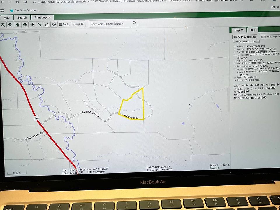 35 Acres with Agriculture Classification for property taxes of just $26 annually. Gorgeous View Property of the Big Horn Mountains including Blacktooth! 360 Degree View of the beautiful Painted Hills (Whispering Hills) and of the valley below. Two hills to decide between to set your best home view. I suggest the other for your hunting cabin that can be rented for income. Just 4 miles east of Sheridan off US Hwy 14 and 1 mile north is Forever Grace Ranch. It is fenced with a shared well and a couple natural springs for livestock. There are three livestock tanks, a portable corral and a shooting range at present. Per county regs you can build one main home for residing and have additional out buildings barn, shop, a small dwelling unit, etc. There are no structures on the ranch so placement is entirely up to the Buyer. Permit in place for stock reservoir and for ground water spring. This is Tract No. 10 of Whispering Hills/Painted Hills. Well is 625' deep with 25 gallons per minute per State of Wyoming permit. Buyer to investigate and confirm. 5th Wheel camper included by separate agreement! In the 21st century, Sheridan is the economic center for a large area spanning three counties in north-central Wyoming and southern Montana. The town has a relatively diversified service economy - including government, healthcare, education, real estate, mining, and financial services, with a growing manufacturing sector - in contrast to many communities in Wyoming that rely mostly on natural resource extraction, government jobs, or national park tourism. Sheridan was ranked number one by True West Magazine in 2006 among the Top Western Towns. It is a vacation destination and a travel stop, due to its proximity to Interstate 90 and U.S. Route 14. Often, tourists stop in Sheridan on the way to Yellowstone Park. Sheridan has a strong rodeo culture that draws from its ranching history as well as a tradition of catering to the wild-west entertainment and shopping tastes of locals and tourists. The Sheridan WYO Rodeo was established in 1931 to provide entertainment and economic development following the success of the PK Ranch Rodeos in 1928 and 1929. It was a professional rodeo from the beginning but took a hiatus because of the Second World War in 1942 and 1943. It returned as a working cowboy rodeo in 1944. The Sheridan-Wyo-Rodeo became a professional rodeo again in 1966. Must come see the Views! MANAGING MEMBER OF LLC IS A WYOMING REAL ESTATE BROKER.