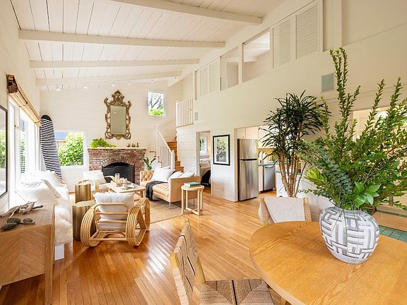 This home offers a rare blend of condition, setting, and detail that simply isn't found in recent sales. While others may appear similar on paper, once you step inside and take in the location, updates, and overall care, the difference is clear. Set against a lush, quiet hillside in old town Bolinas, this beloved 1953 two-story cottage offers sunlit charm, artisan details, and a deep sense of care. Surrounded by flowering trees and the sounds of the nearby ocean, it's a soulful retreat in the heart of town. Thoughtfully maintained, the home radiates coastal ease with hardwood floors, classic textures, and garden views from nearly every room. A Rumford fireplace, built by a local mason, anchors the vaulted living room. The cheerful kitchen features Heath tile, colorful counters, casement windows, and new appliances. Bedrooms up and down offer privacy and garden access. Two updated bathrooms reflect timeless, fresh design. A fenced yard and patio invite outdoor livingall just moments from town and beach.