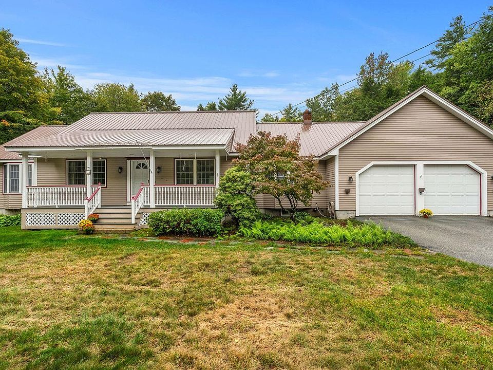 Have you been looking for a low maintenance ranch with lots of privacy (2.6 acres), in a neighborhood, conveniently located near highways, shopping, schools and more! You just found it! This well maintained home has been lovingly cared for by its current owner for over 30 years. It features an open concept kitchen with dining area and a huge walk in pantry. The living room has a cozy gas fireplace and cathedral ceilings. The primary bedroom has a private bath and walk in closet. There are two additional bedrooms, a full bath and a laundry area. Need more space? The basement is finished and offers an additional 1,152 sq. ft of living space, plus lots of unfinished space for storage. 9' garage doors, farmers porch, low energy costs, metal roof, dual oil tanks, back deck with awning and so much more! Don't Delay! Schedule your private showing today!