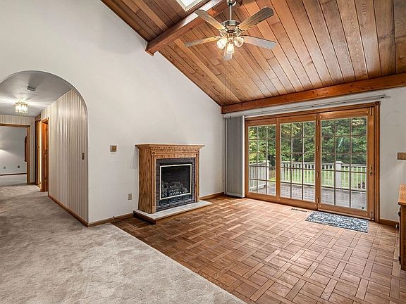 Lots of privacyCozy gas fireplaceLow maintenance ranchMetal roofCathedral ceilingsOpen concept kitchenDining area