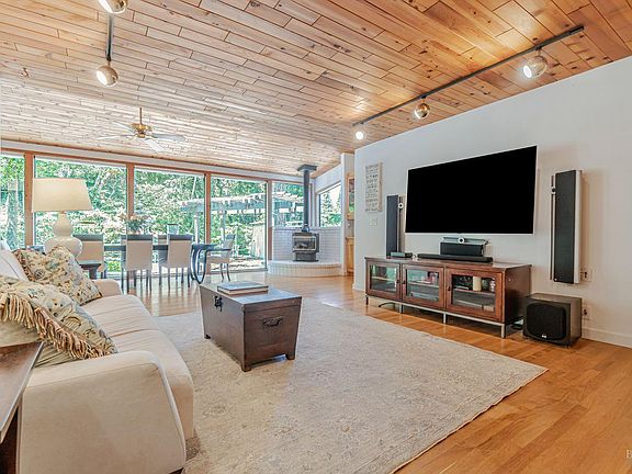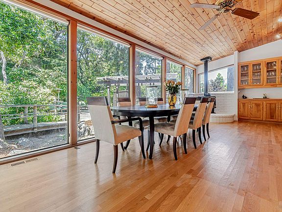 Redwood treesPrivate park-like backyardLarge picture windowsCorner lotWell-maintained kitchenRemodeled bathroomsCustom window treatments