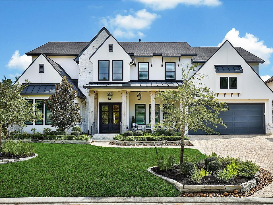Immaculate modern farmhouse in Creekside Park! Gabled rooflines, black-trim windows, stone accents, and a welcoming front porch with 3 GAS LANTERNS. Soaring ceilings, shiplap, exposed beams, designer finishes, EV charger, and bright open spaces. Chef-inspired kitchen with large island, premium appliances, hand-honed countertops bringing refined character to the heart of the home. Private Owner’s suite with a bath featuring dual vanities, a freestanding tub, and a walk-in shower, plus a spacious closet. Upstairs includes secondary bedrooms, a media room, a versatile loft area enhanced with built-in bunk beds perfect for guests or children. Outdoor living shines with a covered patio, landscaped yard, and paver driveway. Enjoy Creekside amenities: Rob Fleming Aquatic Center, George Mitchell Nature Preserve, scenic parks, miles of trails, lakes, and a vibrant village center with shops, dining, and entertainment. Zoned to top Tomball ISD schools, with easy access to Grand Parkway and I-45.