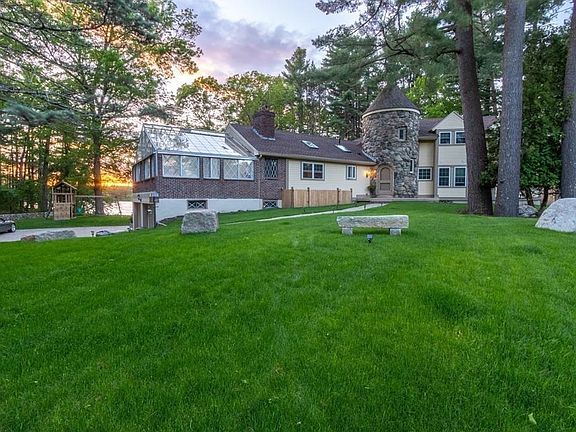 This home is well known as the Castle House become the next King or Queen of your own Castle. EXTREMELY RARE waterfront with direct access to Field Pond & Harold Parker This 12-room estate has been completely renovated. Walkway pavers lead you to an enchanting castle style entrance with a three level Torrent stair case encased with stone. Hand crafted wood archways and cathedral ceiling personalize the open concept family room with a cascading stone fireplace leading to a generous kitchen with customized 11 x 8.5 ft Island, 5 burner built in stove and a walk-in butler???s pantry. Customized Master Bedroom is warmed by an electric fireplace and two amazing adjoining bathrooms with a balcony overlooking a custom patio surrounding a heated salt water swimming pool. Tiki hut with built in TV and gas hook ups. This fascinating property will captivate you with all it has to offer. From spacious and enticing custom wet bar, sauna, greenhouse, sprinkler system, azek decking, vinyl fencing.