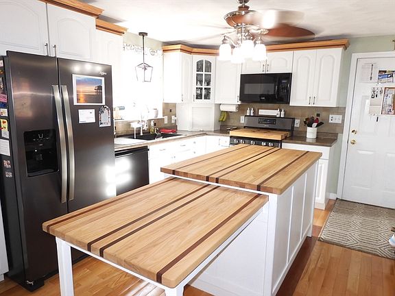 Move right in to this amazing colonial with full private in-law unit situated at end of cul-de-sac. Main home features large kitchen opened to dining area with stunning custom floors and wonderful light and bright family room that leads to large deck overlooking great yard with loads of privacy. 1st floor also features fireplaced living room with custom hardwood floors, formal dining room with parquet floors and 3/4 bath. 2nd floor boasts large primary with cathedral ceiling and 2 other good sized bedrooms all with gorgeous wood floors. Walk up attic has potential to be finished or used for storage. The Aux Unit (in-law) features private entrance, open concept living room, kitchen / dining area, a good sized bedroom and full bath. Enjoy quiet nights at the firepit in secluded back yard. Do not miss the 2 car garage, solar and 2 sheds. Close to major highway, shopping, restaurants and NH border. Bring the extended family you will not be disappointed.