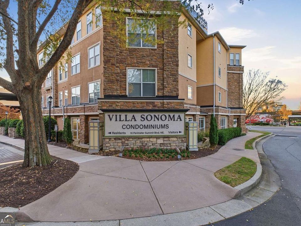 Welcome to 10 Perimeter Summit Unit 4439, a light, bright, and airy 2 bedroom, 2 bath condo offering modern comfort and unbeatable convenience in the heart of the Perimeter area. This beautifully maintained top-floor unit features an open layout and a chef's kitchen complete with stainless steel appliances, gleaming white cabinets, and granite countertops. Wood and tile flooring run throughout the main area with newly carpeted bedrooms, creating a cohesive and low-maintenance living experience. The primary ensuite offers exceptional privacy and comfort with double sinks and an enormous walk-in closet. The spacious secondary bedroom and full bath provide the perfect setup for guests, roommates, or a dedicated home office. Large windows fill the space with natural light and offer great views in this true lock-and-leave residence. Villa Sonoma delivers a resort-inspired lifestyle with amenities designed for comfort and connection. Enjoy a resort-style pool, generous green spaces and walking trails, dog trails, a fully equipped fitness center, conference room, clubhouse, billiards lounge, movie theater, and a car wash area. The community hosts regular social events including food trucks, movie nights, and rotating gatherings, creating a fun and engaging atmosphere for residents. EV charging stations are available for an additional fee. The location is unbeatable, just steps from Villa Christina Cafe, The Little Gem diner, and the Perimeter Coffee Shop and moments from Perimeter Center's shopping and dining, the new Target, and nearby parks such as Blackburn Park and Murphy-Candler Park. Perimeter Mall, top-rated restaurants, and major retailers are all within minutes. With fast access to GA-400 and I-285, commuting anywhere in Atlanta is effortless. Don't miss the opportunity to experience a perfect blend of comfort, convenience, and community in one of the most desirable locations inside the Perimeter. Unit 4439 at Villa Sonoma is ready to welcome you home. Assigned parking spots are #387 and #543. parking spot #543. Ask about our preferred lender credit up to 1% of loan to be applied toward closing cost credit or rate buy down.
