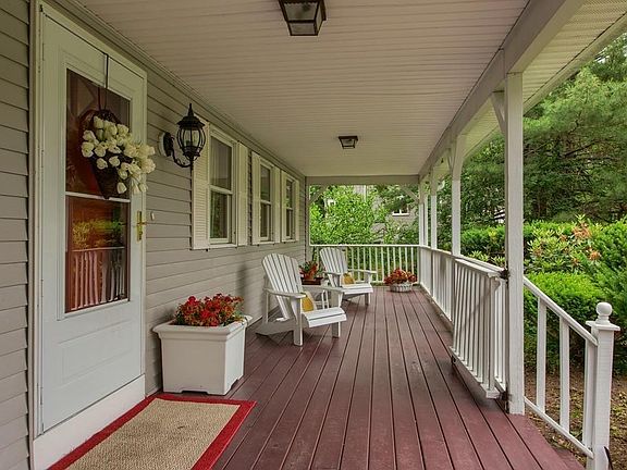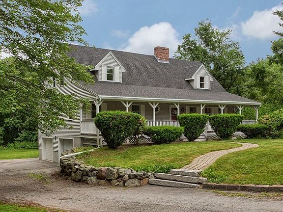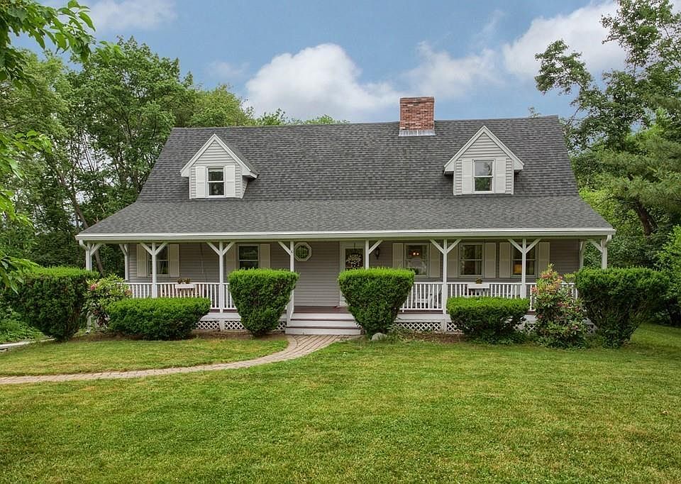 Rare find!! Oversized Custom Cape with a farmer's porch! Set back from street, this home offers a lovely open floor plan with a fireplace living room, combo kitchen dining room, beautiful wide pine floors, a master suite, another bedroom and full bath on first floor. The second floor offers two generous sized bedrooms with plenty of closet space and a cozy loft area. The partially finished basement has an office with half bath and laundry. Other amenities include: two stall garage under, an oversized drive-way for plenty of parking and 1.83 acres of land. Updates include 2017 Navien gas heating system, front side roof replaced in 2016, wall ovens in 2017, currently renovated farmer's porch, new carpet, new wood flooring in basement and fresh interior paint. Home is located on a dead-end street and is in the sought after High Plain/Wood Hill school district.