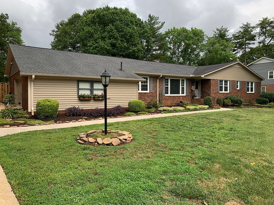 Welcome home! Beautifully renovated charming brick ranch is just what you’ve been waiting for! This wonderful family home features 4 bedrooms, 2.5 baths and 2-Car attached side entry garage with expansive workshop. Youll love the curb appeal with new windows, new siding and new garage door. Relax outside on over a half acre of gorgeous lush landscaping w/ fully fenced in back yard. This classic home is light and airy, completely updated and move-in ready. From the moment you walk in the door youll notice the many upgrades and features. Formal dining room to the left features a new brushed nickel contemporary chandelier and a wall of new windows filling the room with natural light. Walk through a pair of double glass doors into the sunny Breakfast Area with lustrous hardwood floors and wainscoted walls. A perfect spot to enjoy your morning coffee. An open concept oversized Chef's kitchen follows with granite countertops, recessed lighting, stainless steel appliances, open breakfast bar, under counter lighting and upgraded cabinetry. Entertain and prepare delightful meals with an abundance of workspace. Walk in double door pantry is adjacent to endless walls of cabinets. The chef of the family will absolutely love this space! This gorgeous kitchen is open to the great room. Stunning hardwood floors continue through the space into a large room with two story vaulted ceiling, custom built ins for large TV and display and floor to ceiling masonry gas fireplace with raised hearth that creates a more casual feel. This gathering place is perfect for the entire family. New glass French doors open and give you direct access to the expansive screened in porch which lets the entertainment flow! The exterior boasts a fabulous space for hosting large parties in the evening or having quiet cup of coffee in the morning in a park like setting in the fantastic backyard. Outside private deck is set among mature landscaping, blooming flowers and vines and features a direct gas line for your grille and ample space for outside dining. Step down onto pavers that wrap around to an additional intimate seating area. The enormous fenced-in yard is perfect for children and pets to play! Back inside find the updated half bath with custom cabinetry and new updated wall sconces. The Master Suite awaits you with beautiful hardwoods, his and hers closets and ample space to accommodate over-sized furniture. Tranquil updated En-suite master bathroom features double sinks and over-sized custom walk in shower. Both spaces have bright open windows with views of the landscaped private backyard. 3 more spacious light filled bedrooms have fantastic closet space and neutral carpet. An additional full bath completes the living quarters for your family and guests. A dream laundry room / mud room is off the kitchen and has tile floors, endless storage, folding area, utility sink and space for a seating area for book bags, coats and bags. Two car side entry garage has a true walk-in 23 x 6 man cave workshop complete with workbench. The neighborhood pool is an easy walk from the house and the no thru traffic neighborhood is perfect for children riding bikes. Nestled in a prime location minutes to 385, downtown Greenville, shopping, hospitals and cultural venues. This home will go fast! Schedule a personal showing today!!