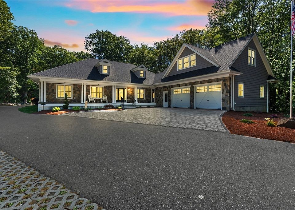 Set back on a picturesque, tree-lined private driveway, this stunning custom one-level contemporary home offers an exceptional blend of comfort, style, and versatility. Featuring 3 spacious bedrooms, 3 baths, and a fully permitted 1-bedroom/1-bath Unit, perfect for multigenerational living. Step inside the main home to an open-concept great room with cathedral ceilings, radiant heated floors, and a cozy wood-burning fireplace. The eat-in kitchen features a large center island, floor-to-ceiling cabinetry, quartz countertops and stainless steel appliances. The primary suite offers an oversized window with serene views, a walk-in closet, and a spa-like en-suite bath. Step out onto the expansive deck showcasing a stunning custom stone fireplace, perfect for relaxing evenings.The attached 2-car garage offers convenience and direct access to both the main home and apartment. A detached fully heated 3-car garage with car lift and ample storage complete the home.