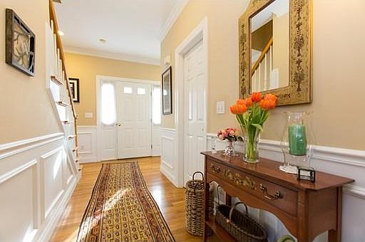 Classic 4BR 2.5 bath Center Hall Colonial in a quiet family neighborhood near the conveniences of Wellesley Farms! Built in 1997, this elegant south-facing home on scenic grounds is graced by high ceilings, hardwood floors, crown moldings, wainscoting, large sunny windows/glass doors & an open floorplan for entertaining. A living room, dining room & chef's kitchen that opens to a family room with fireplace afford comfort on the main level. Off the family room sits a serene deck for outdoor gatherings. The upstairs master BR offers a huge walk-in closet & oversized bathroom with a soaking tub & glass shower. The piece de resistance is the lower level's incredible Man Cave, custom-built with wood paneling, tin ceilings, extensive built-ins & entertainment center, a bar & wine cellar. Relax in the peaceful rear yard with a large lawn & charming paver patio. Great address in Wellesley Farms within walking distance of the train & Wellesley Lower Falls shops, plus minutes from major routes.