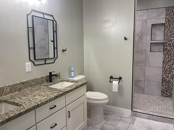 Enjoy the ease of one level living with an open floor plan, in-floor heat plus forced air furnace and cent. /Air. The spacious living area features a cozy fireplace, generous dining space and a bright sunroom, perfect for a relaxing or entertaining. The kitchen is a chefs dream with a large island, quartz countertop, panty, new appliances and main floor laundry nearby for convenience. The private master suite includes a walk-in closet and a beautifully tiled walk-in shower in the master bath. Additional highlights 2 walk in showers fully fin 2 car garage with in-floor heat, floor drain. lawn sprinkling system, leaf Gard gutters, landscaping, mature trees and perennial flowers all on a lovely corner lot.
