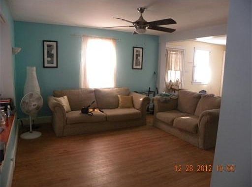 charming 2 bedroom 1 bath cape with updated kitchen and bath. Open concept eat in kitchen and livingroom, Hardwood floors throughout, finished lower level with walk out, screened porch, yard, newer roof, low maintenance siding