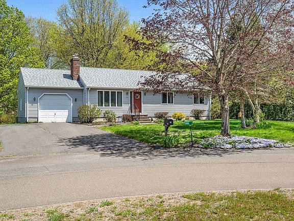*Highest and Best offers due by Wednesday May 8 at 9 am*. Meticulously maintained ranch desirable Easthampton location, tucked away on a quiet cul-de-sac off of East Street. The welcoming light-filled living room features a cozy pellet stove and seamlessly flows into the spacious eat-in kitchen, where sliding doors lead to a deck overlooking the sweet backyard. Completing the main floor are three bedrooms, a full bath, and a convenient half bath attached to the primary bedroom. The basement has been tastefully finished to offer additional living space. Recent updates include roof, oil tank, boiler, engineered hardwood floors and freshly painted interior (APO).