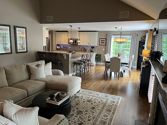 BEAUTIFUL, fully renovated, ranch style home in New Boston, NH, is turn key and ready for you! This 3 bed, 3 bath pool home is nestled in a sought after neighborhood and schools. Surrounded by mountain views, this home has it all! Enter to an open floor plan featuring a cathedral ceiling in the living area with a gas fireplace, and dual doors leading to the gorgeous back yard. The spacious kitchen has stainless steel appliances (5 yrs), professionally painted cabinets (2021), granite tops, under-cabinet pull-outs, under cabinet lighting, and Reverse Osmosis water system for the purest of water. The large master bedroom and on-suite, has triple windows, and a generous walk-in closet with a closet system. The newly renovated bath shows a double vanity sink with quartz top, soaking tub, and step in shower. The second bedroom has cathedral ceiling, large round-top window, ceiling fan and large closet. The third bedroom has a ceiling fan and an X-large closet! Enjoy first floor laundry with plenty of storage. Downstairs you will find a finished level for extra living space, or potential guest/in-law, with it’s own entrance. This space has a living area with electric fireplace, kitchenette, bathroom with shower, closet and storage. Outside is just as beautiful as the inside! Meticulously cared for, all level 2.44 acre property with mountain views is breathtaking! Luscious plants and trees and 12-zone irrigation system makes this property second to none! Granite stairs lead to the paver patio with gazebo for those perfect summer gatherings. Steps away is a 30' round *Heated* pool with new liner (2021) and trek decking. Store all the yard/pool equipment in the large shed. The drive/walkway is newly paved (2021) and seal-coated (2023). Added Features: Central AC, Water Softener, Radon System, Generator Hookup, Landscape Lighting, 12-Zone Irrigation System, Newly Insulted Attic, Insulated/Sheetrock Garage, Pool Heater and Equipment.