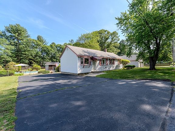 Discover the Charm of Single-Level Living in Desirable East Billerica! This beautifully maintained ranch boasts three bedrooms and 1.5 bathrooms. Enjoy the warmth of hardwood flooring throughout, along with a cozy living room, an eat-in kitchen, and a conveniently located laundry area, all on the main level. Set on just under an acre, this lot presents numerous opportunities! Currently, multiple structures are situated on the property, including a two-car detached garage, two storage sheds, and a pool bar area.The basement offers excellent potential for future expansion and the pull-down attic provides an ideal storage space. With an in-ground pool, spacious lot, and ample parking, this location is truly a wonderful place to call home!! You'll enjoy close proximity to major highways, public transportation, schools, restaurants, and much more. Don't miss out—schedule your showings today!