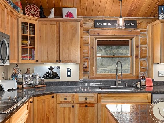 A one-of-a-kind Montana horse property spanning 132± acres of native grassland & rolling hills, prized by horse trainers for conditioning. The 4,738± sq ft log home blends rustic charm with wide-plank hardwood floors, hickory cabinets, granite counters, radiant heat, & custom lighting. A 2-bed/1-bath guest cottage adds private accommodations. Equestrian amenities include a 60×80 covered arena, 120×200 outdoor arena, 4-stall barn with tack, runouts, dry lots, steel sheds, covered hay storage, patience poles, & shop. Fenced pastures (80, 40 & 5 acres) feature one electric and two geothermal waterers, plus a well and cistern system. An extra cistern at lower corrals and proximity to town add convenience. Unique riding terrain means you’ll never have to trailer out. Sweeping views and endless recreation complete this turnkey ranch you couldn’t recreate.