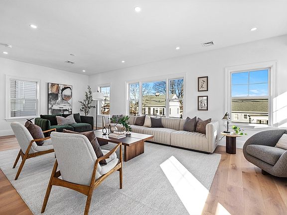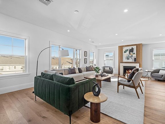 Ground up new construction, 4 bedroom, 3 bath penthouse featuring off street parking, 2 private decks, oversized windows, abundant natural light, and sweeping views from this elevated location. This home has been thoughtfully designed to include an expansive open concept floor plan with a 500sf living room boasting custom gas fireplace, sunlit dining area with wet bar, walk out deck, and a chef’s kitchen equipped with double convection smart oven, commercial-style gas rangetop, 1000 CFM range hood, pantry closet, and a 10 foot quartz island. Two large closets and a bright guest bedroom suite complete the main living level. The upper level offers two guest bedrooms alongside a modern bath, linen closet, LG smart washer & dryer, and a master suite complete with a spacious walk-in closet and southwest-facing deck with skyline views. Enjoy the neighborhood vibe of Ten Hills while living just a few blocks from Assembly Row, the Orange Line, miles of green space, and multi-point transit!