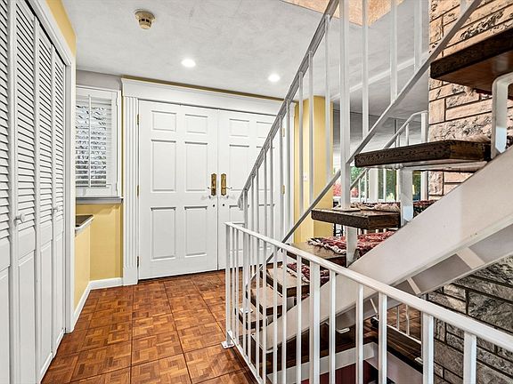 The architecture of this 1960s modern home has original architectural details and is located on a large lot at the end of a quiet dead-end street in South Salem. Enter through double front doors into a foyer with an open-riser staircase and exposed stone wall. The oversized living room with hardwood floors and fireplace opens to a large sunroom with dining room and seating area that looks out at the landscaped yard through giant windows and skylights. The kitchen, located in the heart of the home also opens into a cozy den, half bathroom, and solarium with in-ground large hot tub and skylights. Upstairs, the oversized primary bedroom with cathedral ceilings has an ensuite bathroom. This level also offers two large guest bedrooms, full guest bathroom, and laundry. The finished basement includes a large family room with fireplace and an unfinished workshop. The finished garage currently serves as a back door and mudroom. Make your mark on this modern beauty.