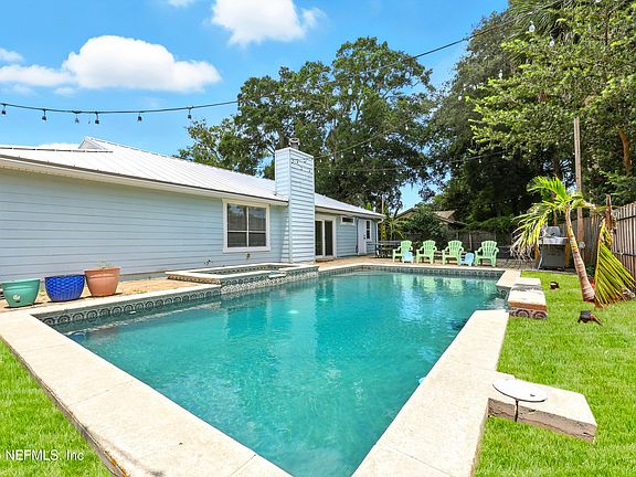 IDEAL LOCATION IN JAX BEACH! Nestled on a serene quarter-acre lot. NO HOA fees, no rental restrictions & ample parking space, including room for a boat or RV. Located just a short stroll to the Intracoastal, Baptist Beaches Hospital, Jax Beach Golf Course & Sunshine Park for outdoor adventures. This entertaining POOL home offers a perfect blend of coastal charm & modern amenities. Featuring an open floor plan with 4 bedrooms, plus a home office that can serve as a 5th bedroom. The open design connects the living, dining & kitchen areas, creating an inviting space for both entertaining & everyday living. Step outside where you can enjoy the sparkling pool & spa surrounded by an oversized fenced yard adorned with various citrus trees. Newer metal roof, newer 5-ton AC unit, newer smart appliances, newer pool pump and more! It's the perfect spot for relaxing & soaking up the Florida sunshine. Close to top-rated schools like Seabreeze & Jax Beach Elementary. It's a MUST SEE! Spacious yard with expanded paver patio for grilling and entertaining. Interior laundry with utility sink and storage shelving for added convenience. Wood flooring and wood laminate throughout. This home is a must see!