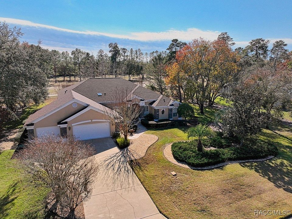 Looking for luxury, look no further! A fantastic deal, good price for a home in a great neighorhood and on a golf course. Located in Southern Woods a section of Sugarmill Woods. this stunning single-family sits on .62 acres along the 10th hole of the Citrus National Goilf Course. Built in 2002 , new roof in 2022, this 3-bedroom, 2.5 bath home offers an extra large 3 car garage for a total of 3936 sq. ft. under roof. Inside you'll find a gourmet kitchen featuring granite countertops and a distinctive copper range hood. The spacious layout includes large family and living rooms, great for entertaining and relaxation. A dedicated office is set up for two, and the the house is brightened by two skylights.