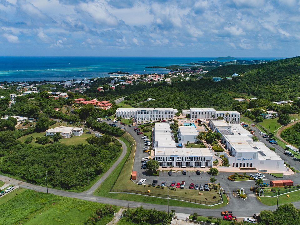 Caribbean life awaits in this beautifully updated condominium located at Questa Verde. The lower level entrance features a charming foyer and three private bedrooms, one with an ensuite bathroom and walk in closet. Take the stairs to the upper level where you are greeted with a spacious living area framed by floor to ceiling windows that let the bright light and breezes fill the room. The roomy gallery is an extension of the living space where you can relax while being captivated by the amazing views of the Christiansted Harbor and the Caribbean Sea. The unit has a newly remodeled kitchen, featuring stylish appliances and neighboring formal dining area This complex has gated entry, large swimming pool, and features an automatic generator. Perfect retirement home or investment property!