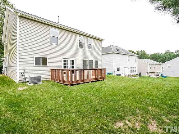 This Durham two-story cul-de-sac offers a fireplace, a den, a deck, and a two-car garage.