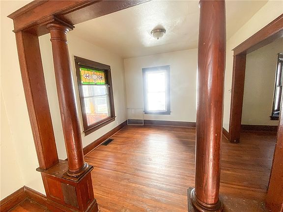 Spacious colonial located in the heart of the City of Rochester! Step inside from the inviting enclosed front porch into a spacious foyer that sets the tone for the character throughout. This home is filled with classic details, including beautiful hardwood floors, original gumwood trim, and a stunning stained glass window, that add timeless elegance. The eat-in kitchen offers plenty of storage with light wood cabinets, making it both functional and inviting. Upstairs, you’ll find 3 comfortable bedrooms and an updated full bath, plus a finished attic that provides excellent additional living or storage space. Outside, enjoy a fully fenced yard and a 1-car detached garage for added convenience. With historic charm and updates, this home is ready for its next chapter! Don't miss out on this wonderful home!