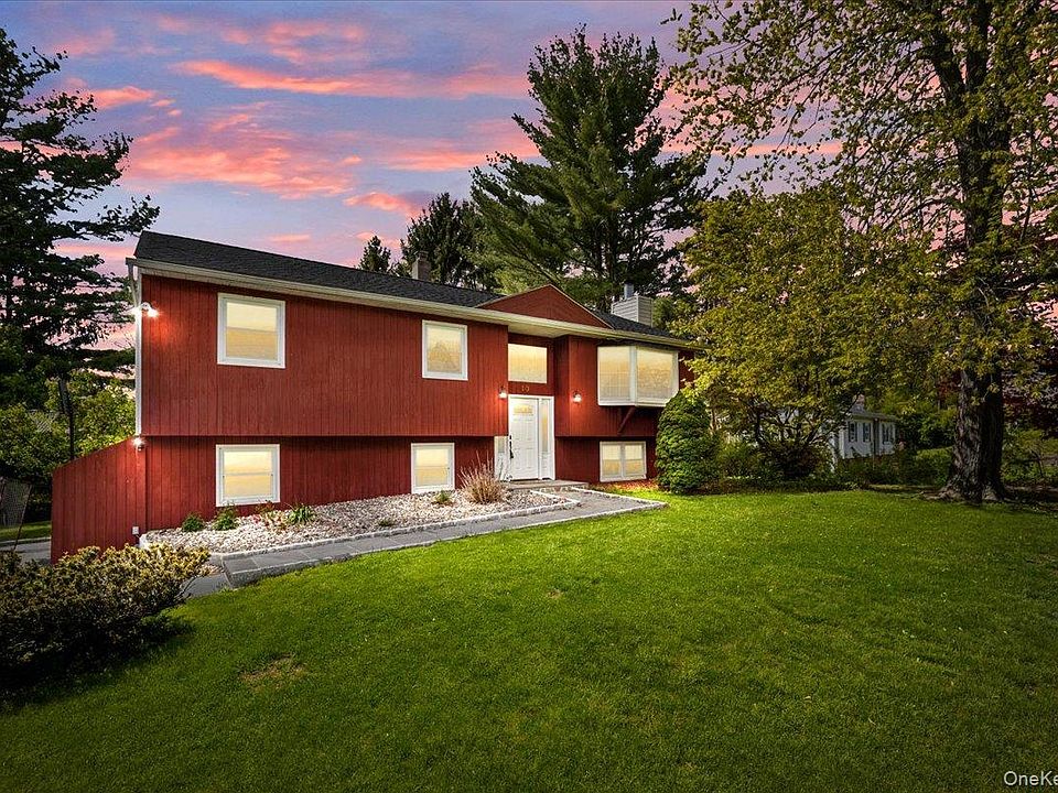 Welcome home to this charming 3-bedroom, 2-bath Raised Ranch, perfectly set on a generous .46-acre lot in the Mahopac School District. Step inside to an inviting dine-in kitchen featuring stainless steel appliances, a skylight that fills the space with natural light, and direct access to a covered porch—ideal for morning coffee or relaxed outdoor dining. Hardwood floors flow seamlessly through the dining room and into the bright, airy living room, highlighted by a beautiful bay window. A graceful, curved archway leads to three comfortable bedrooms, offering a peaceful retreat at the end of the day. The expansive walk-out lower level provides incredible additional living space, including a cozy family room with a fireplace, abundant storage, and direct access to the private rear yard. Outside, enjoy your very own oasis with an above-ground pool and lush, green surroundings—perfect for summer fun, entertaining, or simply unwinding.