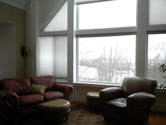 Let yourself be surprised! 8 steps up to 2nd Floor Flat condominium, then all on one floor. The "surprises" include the soaring vaulted ceilings, the glass wall with expansive views overlooking the Golf Course and Allegheny Valley. Gleaming hardwood floors throughout. Fully equipped galley style kitchen with equipped laundry included,ten foot ceilings,walk out to new deck,two Bedroom suites with full baths both generous sized. Large storage area behind one car detached garage. New Roof and New Deck.