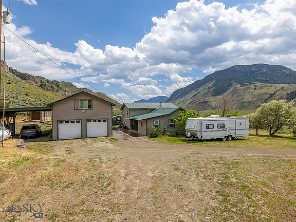 Nestled in the heart of the valley outside of Gardiner, Montana, 10 Rigler Bluffs Rd offers 8 acres of an unparalleled living experience with breathtaking views and serene surroundings. This stunning property is perfect for those seeking a tranquil retreat with easy access to nature's wonders. Situated on Rigler Bluffs Rd, this home is just a 10-minute drive from the entrance to Yellowstone National Park, overlooks the Yellowstone River, and conveniently sits across from the Yellowstone Hot Springs, providing endless opportunities for outdoor adventures, wildlife viewing, and scenic beauty. The expansive property offers two living spaces; the main home and an ADU that sits on top of the large, detached two-car garage. The primary bedroom of the main home was constructed in 1940 and brought to the property from a Gardiner motel. It was refurbished while the rest of the home was built and finished in 2005.