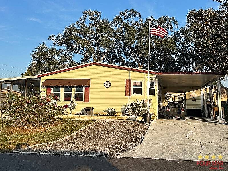 Enjoy one year paid lot rent with full price offer! Stunning home with many upgrades such as 2022 HVAC, 2021 shingle roof and new hot water heater. Open concept floor plan with a bonus area. Large kitchen with lots of storage and counter space and newer appliances. Beautiful laminate flooring. Nestled on a large comer lot beautifully landscaped. The screened Lanai is a favorite resting spot. Inside laundry, 8x8 storage shed and 12x14 workshop. Call for a virtual or private showing.