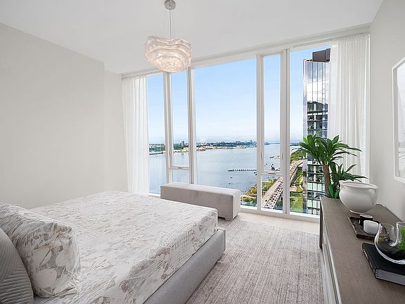 Imparting Hudson River views to the North, this highest-floor-in-the-line two-bedroom, two-and-a-half-bathroom residence at One Waterline Square is bathed in light with expansive floor-to-ceiling windows in every room with extra high ceilings. The primary bedroom suite features endless views up the Hudson River, an oversized walk-in closet and a luxurious marble-clad five-fixture bathroom with heated floors. The second bedroom enjoys the privacy of an en-suite bathroom and a stylish powder room provides convenience for guests. Custom Italian kitchen by Pedini celebrate the discerning tastes of One Waterline Square’s residents featuring a suite of Gaggenau appliances punctuated by polished chrome Dornbracht fixtures, fully-vented range hood, wine refrigerator and garbage disposal. Residents will also enjoy the convenience of an in-home washer, fully-vented dryer and pre-wired technology throughout the residence.