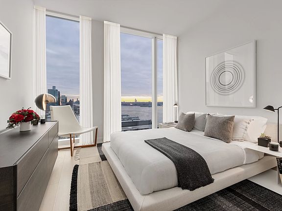 WATERLINE SQUARE IS OVER 95% SOLD. IMMEDIATE OCCUPANCY. 20-YEAR 421A TAX ABATEMENT. This sunny top-floor-in-the-line South-facing three-bedroom, three-bathroom residence at One Waterline Square offers floor-to-ceiling windows with views of the Hudson River and New York City Skyline with extra high ceilings. An open kitchen leading into a sizeable living and dining space flows comfortably, and the primary suite features an enormous walk-in closet and five-fixture bathroom enhanced with radiant heated floors. The additional two bedrooms are perfectly situated adjacent to each other with the second bedroom featuring an en-suite bathroom. Custom Italian kitchen by Pedini celebrate the discerning tastes of One Waterline Square's residents featuring a suite of Gaggenau appliances punctuated by polished chrome Dornbracht fixtures, fully-vented range hood, wine refrigerator and garbage disposal. Residents will also enjoy the convenience of an in-home washer, fully-vented dryer and pre-wired technology throughout the residence. In addition to the Waterline Club, One Waterline Square condo residents will have access to 4,473 sq. ft. of interior and 3,464 exterior luxuriously appointed private amenity spaces located on the 15th floor, including a private 20-seat dining room with catering kitchen, multiple lounge and social spaces, media room, billiards room and bar, great room with fireplace and two fully-furnished and landscaped sundeck with outdoor kitchen and an outdoor fireplace. Residents at One Waterline Square enjoy a rare circular porte cochere entrance on 59th Street and a 24/7 on-site attended parking garage with direct access to your residential floor. This residence is located in a well-established condominium offering a 20-year 421-a tax abatement with a lifestyle that transcends expectations and is available for immediate occupancy. One Waterline Square, designed by Pritzker prize-winning architecture firm Richard Meier & Partners Architects, stands at the southernmost portion of Waterline Square, a comprehensive new community joining Midtown with the Upper West Side. A dynamic collection of three distinct towers designed by the world's most accomplished architects, Waterline Square surrounds a curated new park, bringing lush landscapes through the towers and connecting them to the city. One Waterline Square's striking glass façade commands a full city block between Fifty-Ninth and Sixtieth Streets at Riverside Boulevard, and invites dramatic sunsets over the Hudson River and views of the skyline into the homes. With interiors and a luxurious suite of private amenities by Champalimaud, the fifty-six elegantly proportioned one to five-bedroom residences marry the precision of the exterior with great warmth and act as a canvas to showcase high ceilings, enormous windows, and a rich selection of thoughtfully curated materials. The experience at One Waterline Square is remarkable in every way. The condominium lobby looks out onto the verdant central greenspace offering a seamless indoor to outdoor living experience. In addition to the amenities exclusive to the condominiums of One Waterline Square, residents enjoy exclusive access to The Waterline Club, the largest and most luxurious array of amenities that New York has ever seen. Connecting the three buildings of Waterline Square, Waterline Club is designed by Rockwell Group, offering endless opportunities to inspire the mind, body and spirit with 100,000 square feet of residents-only amenities. Rethink how you live. The complete Offering Terms are in an Offering Plan available from Sponsor: RCB3 Residential For Sale LLC c/o GID. File No. CD16-0351.